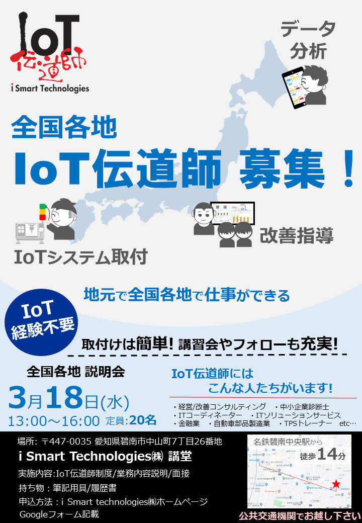私たちと共にIoTを使った生産性向上活動を日本全国に広めて行きましょう!