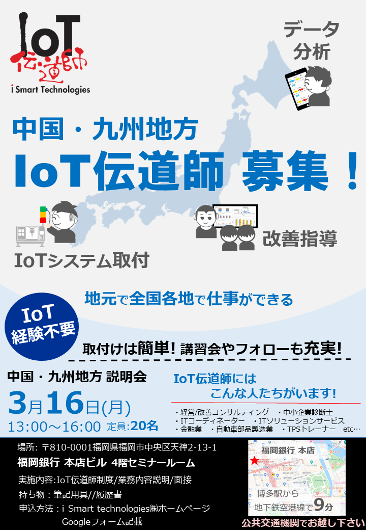 まずは説明会を3/16(月)に福岡県福岡市3/18(水)に愛知県碧南市にて開催致します